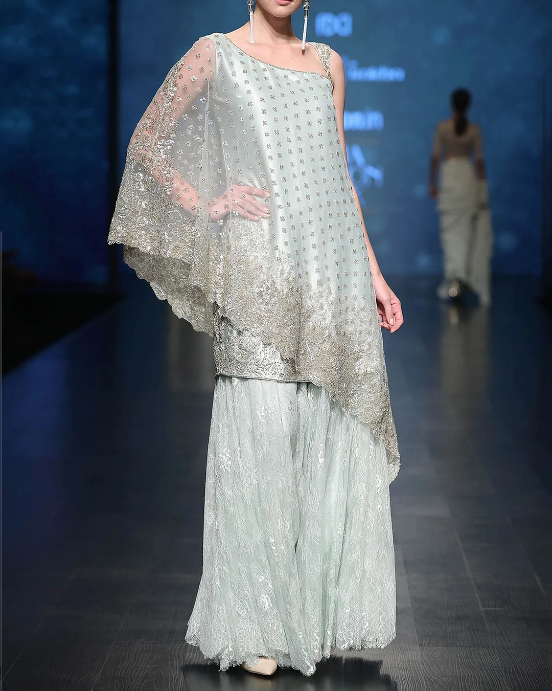 One-shoulder sequined embroidered gown